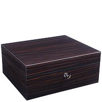 Хьюмидор на 60 сигар в классическом дизайне — корпус выполнен из шпона Эбенового дерева и покрыт многослойным глянцевым лаком. Внутренняя отделка традиционная — испанский кедр. В комплекте есть съемная решетка, увлажнитель последнего поколения, высокоточный электронный термогигрометр. Крепятся в любом месте на крышке благодаря системе магнитов. Хьюмидор Howard Miller запирается на ключ.