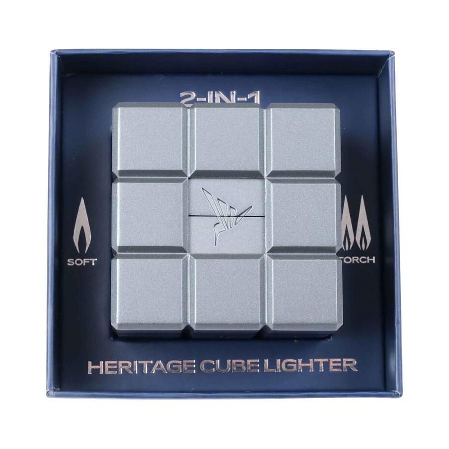 Премиальная серия аксессуаров Heritage Cube от Colibri. Модель оснащена двумя независимыми системами розжига: мощным турбопламенем с двумя струями для сигар и классическим пьезопламенем для сигарет или трубок. Для активации каждого из них предназначена отдельная кнопка. Для контроля уровня топлива в нижней части корпуса расположено смотровое окно. Надёжность зажигалки подтверждена испытаниями, гарантирующими её стабильную работу на высотах до 2800 метров над уровнем моря. Изделие поставляется в подарочной упаковке, с многоязычной инструкцией и картой международной гарантии от Colibri сроком на 2 года. Эта настольная зажигалка идеально дополняет набор для сигар, гармонично сочетаясь с пепельницей и настольной гильотиной из той же серии Heritage.