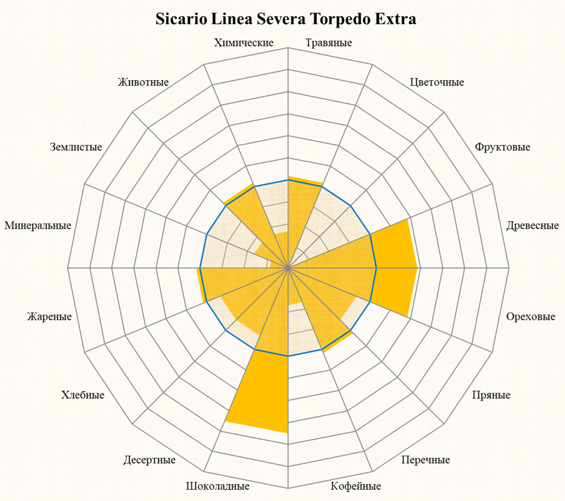 Шоколадные (75%), Древесные(58%), Ореховые (58%), Перечные (42%), Травяные (42%), Жареные (42%), Животные (42%)