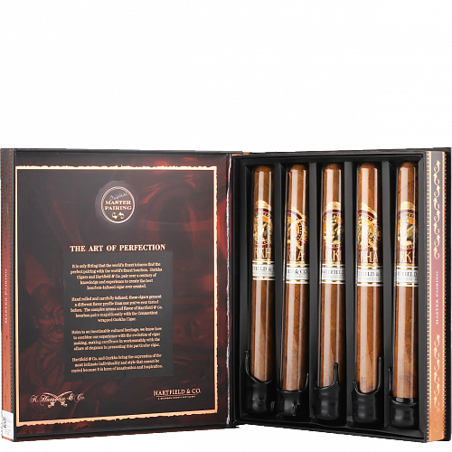 Набор включает сигары формата Churchill средней крепости, созданные из выдержанных табаков с покровом натурального коннектикутского оттенка. Букет раскрывается тёплыми нотами выдержанного бурбона, какао, орехов и сливочной сладости с лёгким землистым оттенком.