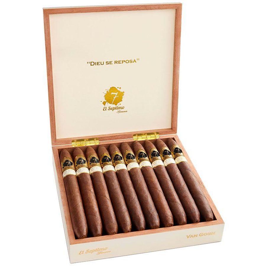 Сигара Van Gogh — величественная диадема длиной более 9 дюймов, личный любимец Зайи Юнана и обладательница награды «Лучшая из лучших» от Robb Report в 2023 году. Темный, маслянистый покровный лист скрывает богатую симфонию вкусов: солодовый шоколад, миндаль и нуга. Эти вкусы дополняются изысканными оттенками дуба, усиливая сложность и глубину вкуса. Аромат и крепость сбалансированы, что делает сигару желанной для широкого круга энтузиастов.