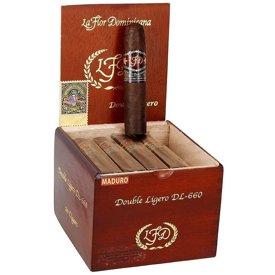 Как следует из названия, наполнитель La Flor Dominicana Double Ligero Maduro содержит в два раза больше листьев лигеро, чем обычно, что дарует этой сигаре крепость. Покровный лист Суматра Оскуро, выращенный в Эквадоре и доминиканские табаки для связки придают сигаре особенный характер и шарм. Крепкий дым обладает нотками специй, древесины и перца.