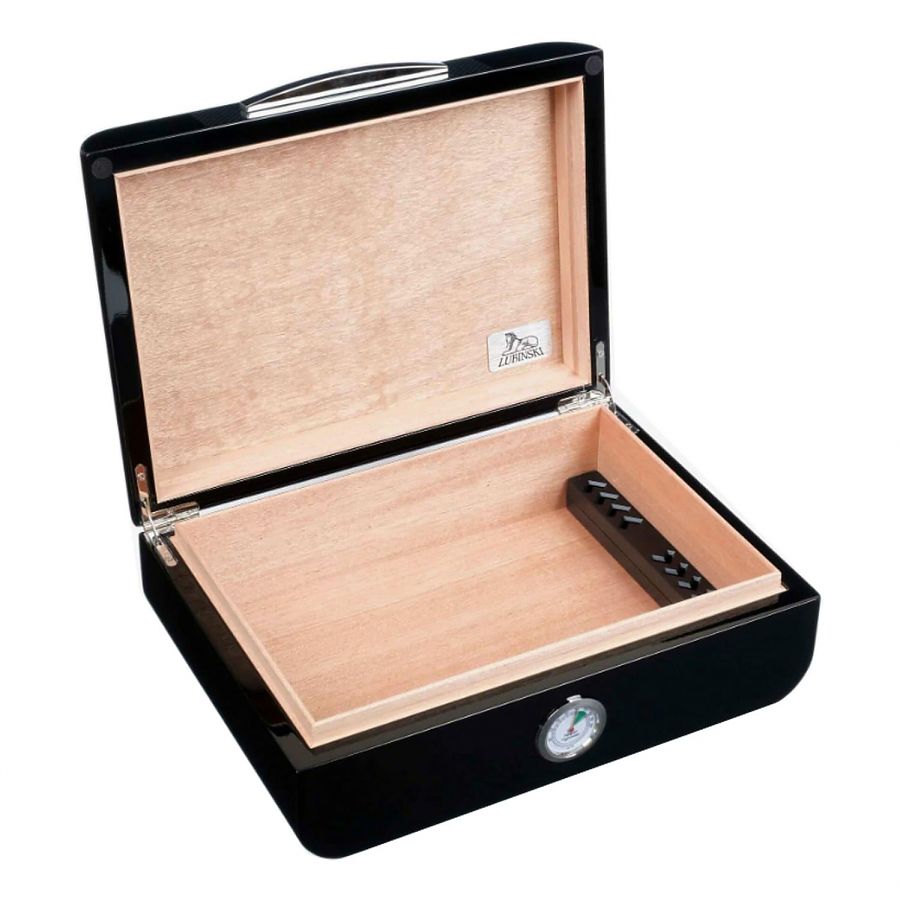 Итальянский хьюмидор марки Lubinski на 40 сигар. Внутренняя отделка выполнена из испанского кедра, хьюмидор укомплектован современной системой увлажнения с акриловым полимером и аналоговым гигрометром.