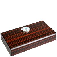 Компактный и надёжный хьюмидор от итальянской марки Lubinski. Прочный корпус изделия отделан шпоном железного дерева и покрыт устойчивым к царапинам лаком. Внутренняя отделка выполнена из испанского кедра. Аксессуар удобно брать в дорогу, он сохранит оптимальноне качество сигар во время коротких путешествий. В комплекте с хьюмидором идут гигрометр, увлажнитель и инструкция по эксплуатации.