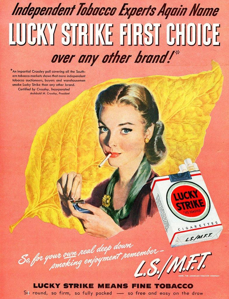 «Американ Тобакко Компани» продолжала свой курс на завоевание дамских сердец. Через несколько лет руководство компании опять обратилось за помощью к Эдварду Бернейсу. В своей книге «Мои первые сто лет» он вспоминал: «Г-н Хилл (президент компании) желал, чтобы побольше женщин курили сигареты "Lucky Strike". Исследования показали, что продажи этих сигарет снизились, так как сигареты в зеленой упаковке не гармонируют с расцветкой женской одежды. "Измените цвет упаковки", – предложил я. Г-н Хилл был возмущен. Тогда я предложил попробовать сделать зеленый цвет основным цветом женской одежды... Год мы работали... Зеленый стал модным цветом».