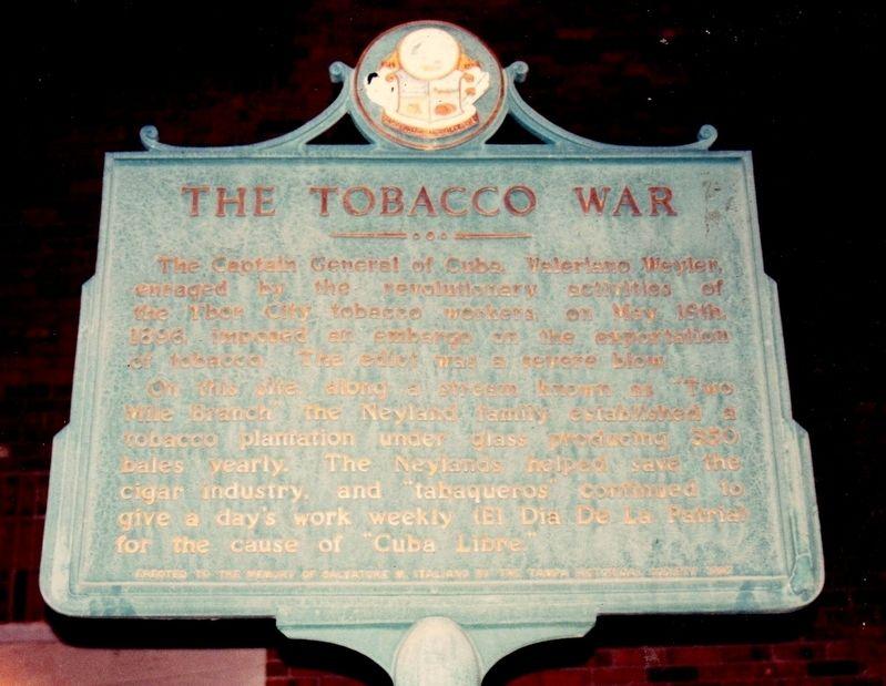 «Генерал-капитан Кубы Валериано Вейлер, возмущенный революционной деятельностью табачных рабочих города Ибор, 16 мая 1896 года ввел эмбарго на экспорт табака. Указ стал тяжелым ударом. На этом участке вдоль ручья, известного как "Двухмильная ветвь", семья Нейланд основала табачную плантацию под стеклом, производившую 350 тюков табака в год. Нейланды помогли спасти сигарную индустрию, и "табакерос" продолжали еженедельно отчислять дневной заработок (El Dia De La Patria) на дело освобождения Кубы».