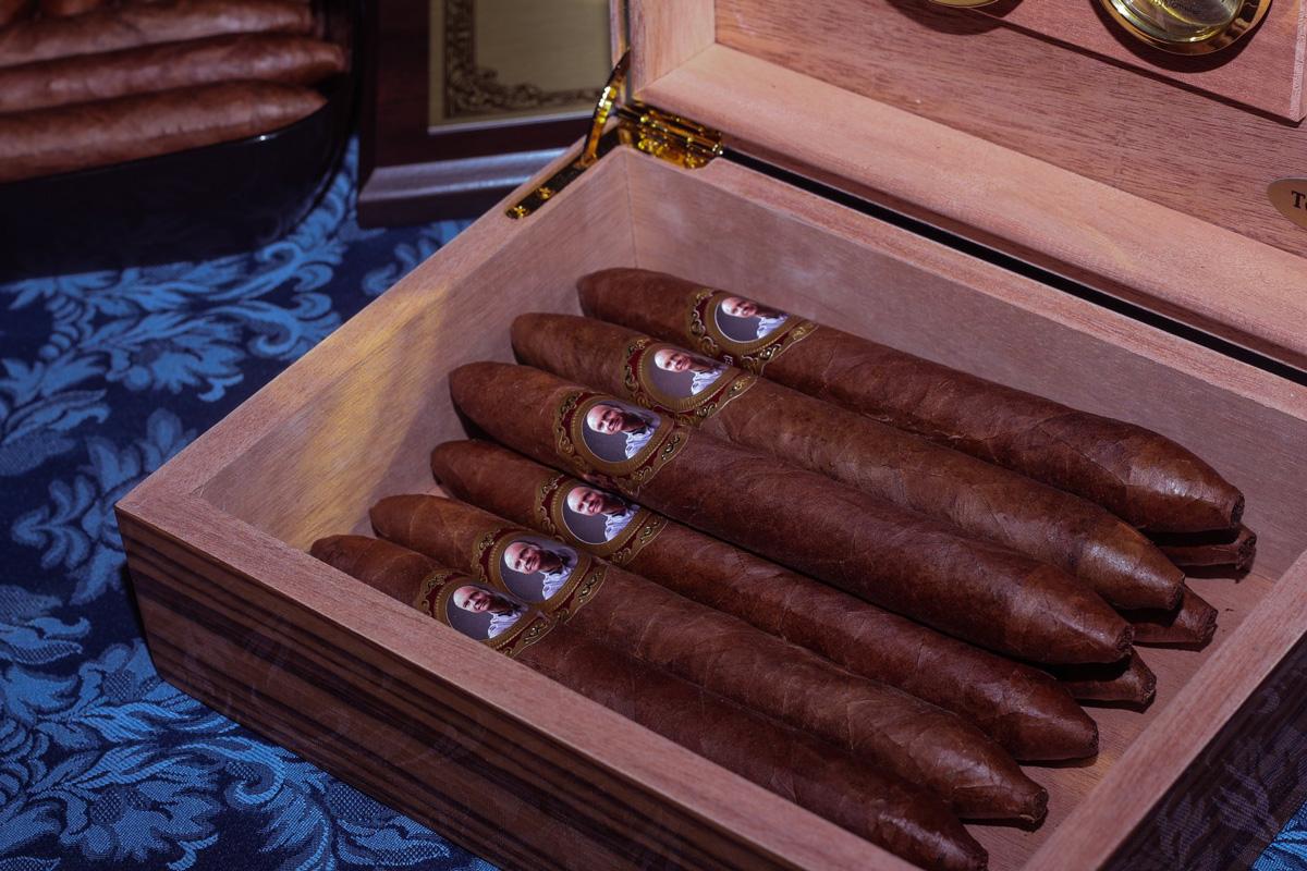 Разумеется, помимо дружеского общения на гала-ужине участников ждали еда, напитки, музыка и, конечно, сигары! Российский сигарный союз продолжил добрую традицию, в соответствии с которой каждый год изготавливаются и на Центральном сигарном событии года в торжественной обстановке вручаются именные сигары знаменитым российским афисионадо. В этом году счастливыми обладателями именным сигар стали: разведчик Андрей Безруков, путешественник Виталий Сундуков, депутат Государственной Думы Сергей Катасонов и основатель программы «Ералаш» Борис Грачевский.