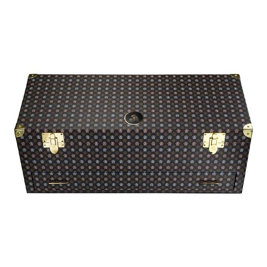Хьюмидор выполнен в стиле дорожных саквояжей начала XX века. Повторяющийся логотип Trinidad превращает его в сундук от-кутюр, достойный ателье Louis Vuitton. В комплекте идет аналоговый гигрометр для контроля уровня влажности. Каждая деталь — от французского механизма до золотых вставок — подчеркивает исключительный статус этого коллекционного экземпляра.