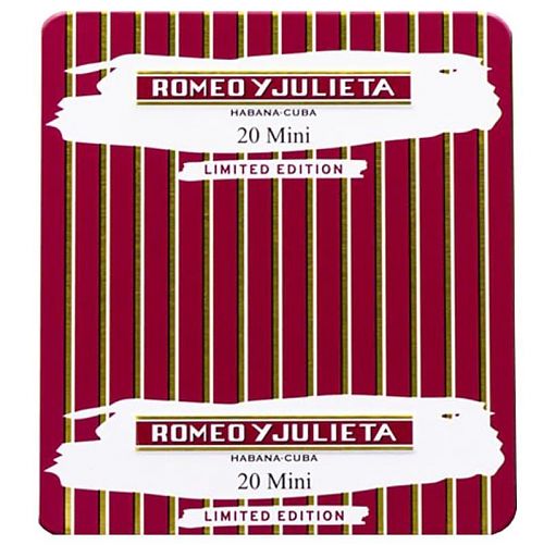 Romeo Y Julieta Mini LE 2024*20 Tin — это премиальные сигариллы средней крепости. Для их изготовления используется первоклассный табак с Кубы. У них такой же яркий аромат и вкус, как у сигар Romeo Y Julieta. Любители этой марки по достоинству оценят их качество. Металлическая упаковка вмещает 20 сигарилл